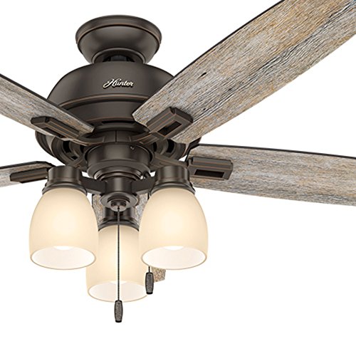 Affiliate reviews Hunter Fan 52 inch Ceiling Fan with Three-light Fitter and Clear Frosted Glass in Brushed Nickel (Renewed) (Onyx Bengal Bronze)